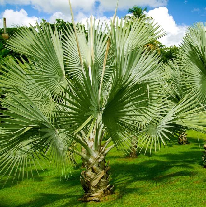 Supported by inward curving fronds, the leaves are accentuated by a blue-gray sheen that gives it a distinctive look, unlike any other Palm.