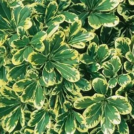 Key Features: Compact Habit, Deer Resistant, Dwarf, Salt Tolerance, Variegated Foliage